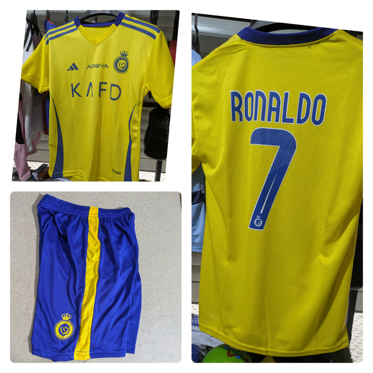 کیت باشگاه النصر لباس رونالدو دوخت شده از بهترین پارچه گرم بالا وارداتی ، کیفیت بالا ، ضمانت ثبات رنگ و ثابت ماندن اندازه ، ضمانت نخ کش نشدن ، ضمانت پرز نشدن پارچه ، پارچه ضد حساسیت و تنفسی در طرح خشتی می باشد.