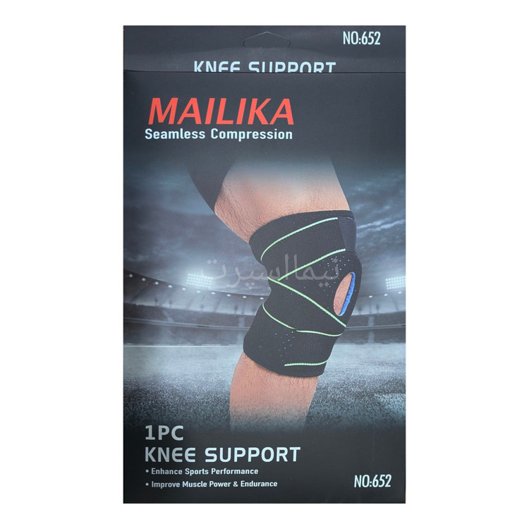زانوبند ورزشی بند دار Mailika با داشتن ۴ فنر قابل انعطاف و بشدت ارتجاعی که هیچ گونه محدودیتی در دامنه ی حرکتی زانوی ورزشکار بوجود نمی آورد در طرفین زانو (هر طرف دو عدد فنر) تعبیه شده و در دسته بندی زانوبندهای ورزشی نگهدارنده آتل دار میباشد علاوه بر فیکس نگه داشتن رباط ها و مفاصل زانو و مینیکس زانو درتمرینات ورزشی و حتی مسابقات مورد استفاده قرار میگیرد و از زانوبند های ورزشی پرطرفدار و کاربردی می باشد .