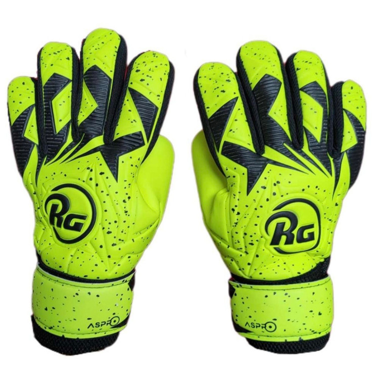 قسمت مچ دستکش دروازه بانی RG از پارچه کشباف و چسب قوی تولید شده و کفه دستکش دروازه بانی از جنس لاتکس طبیعی میباشد که باعث چسبندگی و قدرت چنگ زنی و ایستایی بهتر توپ در دستان دروازهبان می شود .
