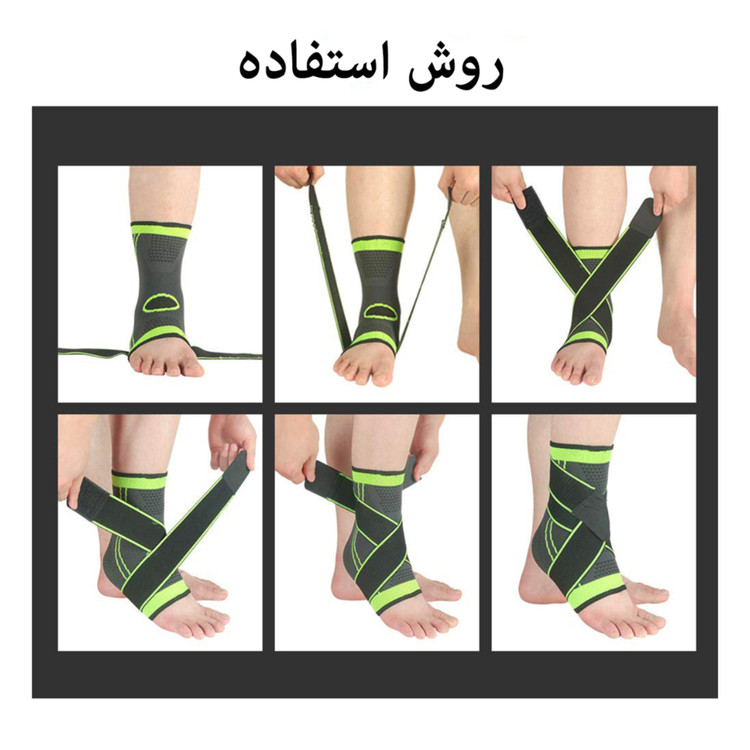 نحوهی استفاده از قوزک بند ورزشی بند دار در اسلاید ها نشان داده شده است و در تمام فعالیت های ورزشی از جمله : دوچرخه سواری ، والیبال ، بسکتبال ، فوتبال ، بدنسازی و ورزش های رزمی و سایر رشته های ورزشی یک پشتیبان عالی می باشد .
